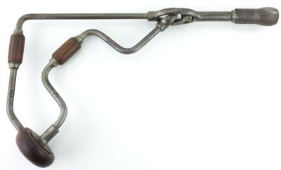 York2023-347 CORNER BRACE. Amidon Patent. These corner braces had the open universal-joint connection between the handle and the chuck, based on Charles Amidon's patent, and are less common than the closed joint later sold by Millers Falls. 6" sweep, Barber type chuck. The chuck shell is pitted but works, metal on the brace itself is clean. Good+ 50-100
