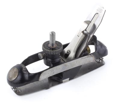 B66-171 FLEXIBLE SOLE PLANE. Stanley No. 20 Japanned type with notched rectangle cutter. A little light corrosion on the nickeled part of the sides, otherwise near mint. Fine 120-240