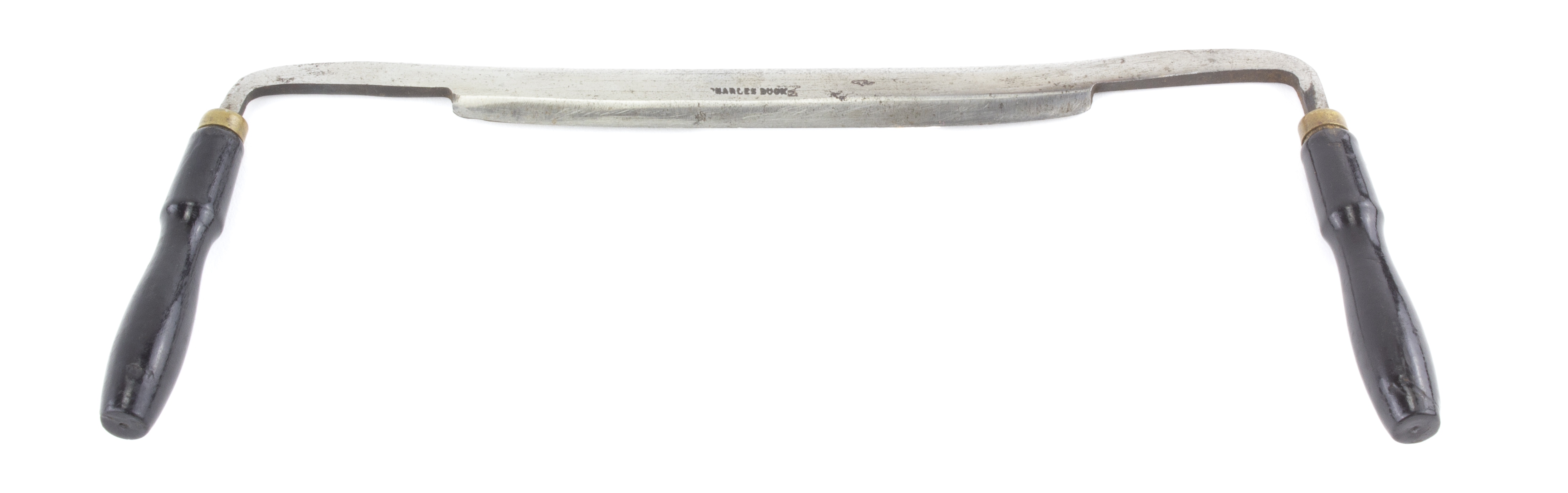 B66-303 SMALL DRAWKNIFE. Charles Buck. 4-1/2" edge, fixed ebonized wood handles, nice and sharp. From the collection of David Jeffers. Good+ 50-100