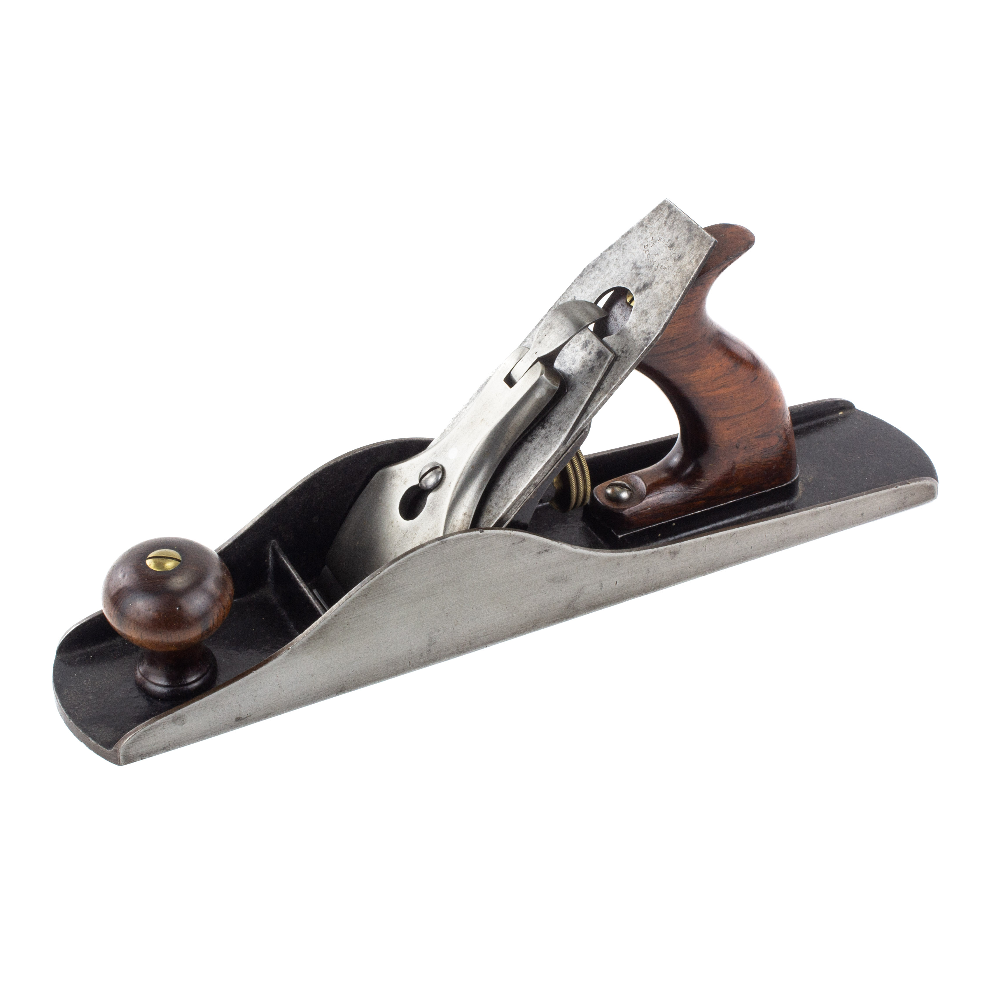 B67-5 PRELATERAL JACK PLANE. Stanley No. 5. Type 2 with proper L. Bailey patent cutter. Japanning 98%, wood fine, a few chips from toe and scratches on sole, light corrosion on cutter, otherwise like new. One of the nicest prelaterals we've seen. Fine 150-300