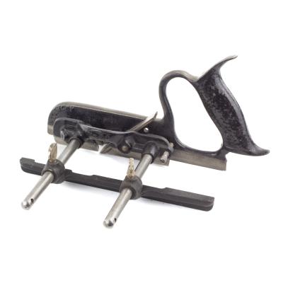 B67-11 LIGHT PLOW PLANE. Stanley No. 54. Offered from 1937-1950, this is the rare japanned pre-WWII version without the cutter adjustment. Japanning is 90%, and a few spots of surface corrosion, primarily on fence locking screw. One 5/8" cutter. From the collection of Harold Unruh. Good+ 300-600