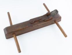 B67-17 MILLER'S PATENT PLANE. Stanley No. 44. Rarest of the Miller's patents. Type 4, all correct parts, very nice color to the gunmetal, a couple of tiny chips from the top horn, no cutter. Looks like it has been shellacked. From the collection of Harold Unruh. Fine 400-800