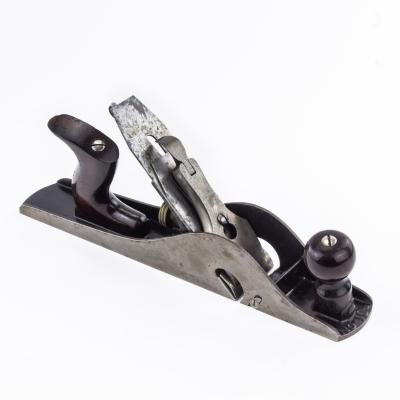 B67-38 CARRIAGEMAKER'S TILT-HANDLE RABBET PLANE. Stanley No. 10-1/4C. Cutter has T mark, two patent dates behind frog. Wood and metal both near fine with some oxidation but no pitting. One of the rarest of all the Stanley planes and one of the last ones most collectors add to the collection. From the collection of Harold Unruh. Fine 600-1200