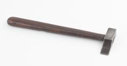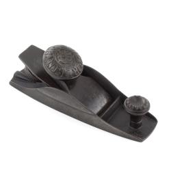 B67-45 AUTOMATIC CHECK PUNCH. Abbott Machine Co. Cast iron base, 7" x 7", with elaborate gold paint, bulbous wooden handle moves a rotating perforating punch on a check that is slid into the side. Still works very well. From the collection of Jim and Christa Schoenky. Good+ 75-150