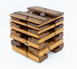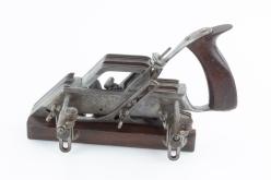 B67-82 1783 COACHMAKER'S SQUARE. 5-1/2" ebony and brass handle, 6" brass blade with ogee end. The brass on the handle is engraved "Ja: Vaughan, 1783." Beautifully made with light wear. From the collection of Steve Dice. Good+ 200-400
