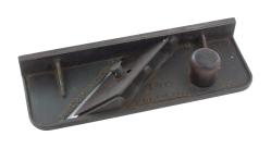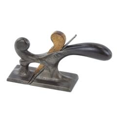 B67-94 FRENCH COBBLER'S SIDE AXE. French sabatier's or cobbler's side axe with 11" bulbous offset handle, crack at end of handle. 9" curved blade with illegible touchmark. Metal has age oxidation but no damage, blade sharp. Attractive. From the collection of John Henson. Good+ 150-300