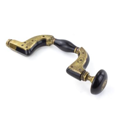 B67-105 BRASS FAMED EBONY BRACE. William Marples Ultimatum. Wood is nice and clean, brass has some light surface pitting but good, clear mark. Hibernia Works medallion on head with ivory ring complete but yellowed. Short nozzle with sliding ring chuck. From the collection of Steve Dice. Good+ 300-600