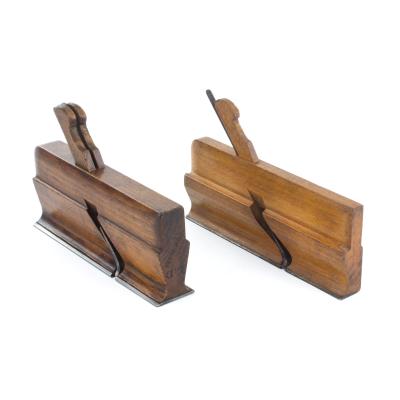 B67-109 LOT OF TWO EXTENDED WIDTH RABBET PLANES. Gardner & Murdock. Both have steel soles that extend slightly beyond the wooden body to permit a more precise rabbet edge not affected by wear to the plane body. One is a very unusual design, with a sole that extends to both sides and separately wedged cutters; the other has a sole that extends only to the right. Unlike many of these planes where the sole is screwed to a flat surface, in these the wooden plane body flares gracefully out to partially support the soles. The double sided one is 7-1/4" long and appears to be applewood, the single sided one is 7-5/8". Both have Gardner & Murdock's A mark and are in near new condition. An exceptionally attractive set of special purpose planes. From the collection of Steve Dice. Fine 200-400