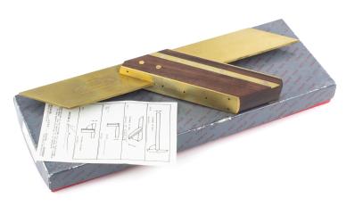 B67-124 MODERN MAKER. Bridge City MS-2 Mitre Square IOB. 9-1/2" brass blade, 5" rosewood and brass handle, inside original box, mint. Includes original instruction sheet. From the collection of Eric Cubic. Fine 125-250