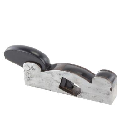 B67-134 INFILL SHOULDER PLANE. 7-3/4" cast steel body, ebony fill and wedge. It has a 1-1/4" Thackery iron that is worn down to its last 1/4", pasteboard shim glued to bottom of wedge. Wood and metal both clean, noting one small chip from fill in front of throat. From a legendary collection of infill planes. Good 125-250