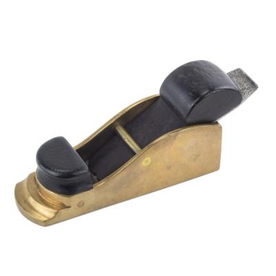 B67-149 INFILL CHARIOT PLANE. Cast brass body with 4-3/4" sole and decorative casting at toe, 1" Mathieson iron, rosewood bun and wedge. Brass has been polished, wood has light wear. Nicely made and attractive. Good+ 125-250