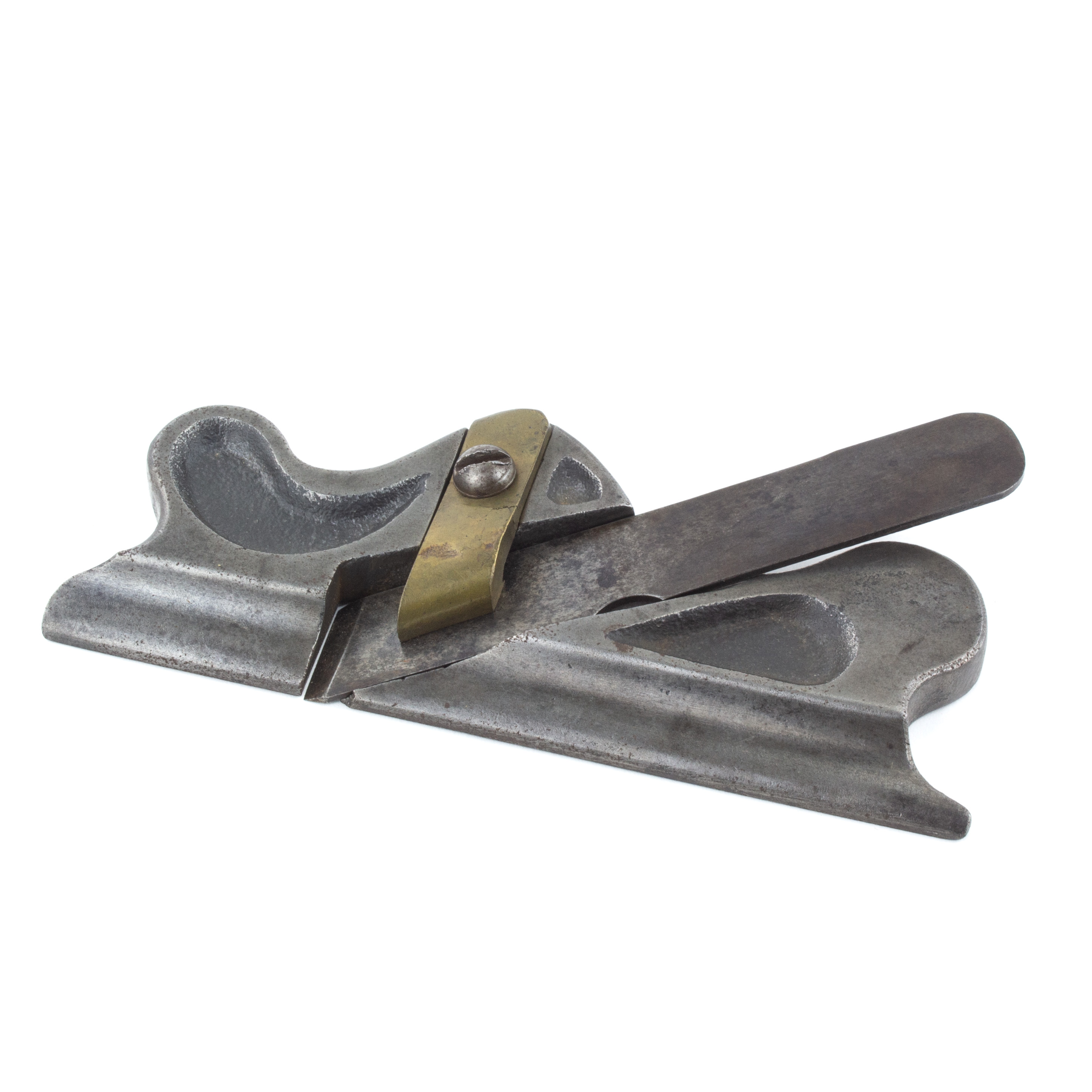 B67-178 SIDE RABBET PLANE. Unmarked and appears user made. Cast iron body with 7" sole, 1" unmarked cutter, light surface oxidation and a few casting flaws. Well made and unusual. From the collection of Harold Unruh. Good 100-200