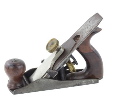 B67-192 NUMBER TWO SIZE PLANE. Standard Rule No. 2. 7" sole, tote and knob good with attractive sapwood streak in tote. Japanning 80%, nickel plating on lever cap 99%, some corrosion to cutter and chip breaker. Proper mark on cutter is faint. From the collection of Harold Unruh. Good+ 200-400