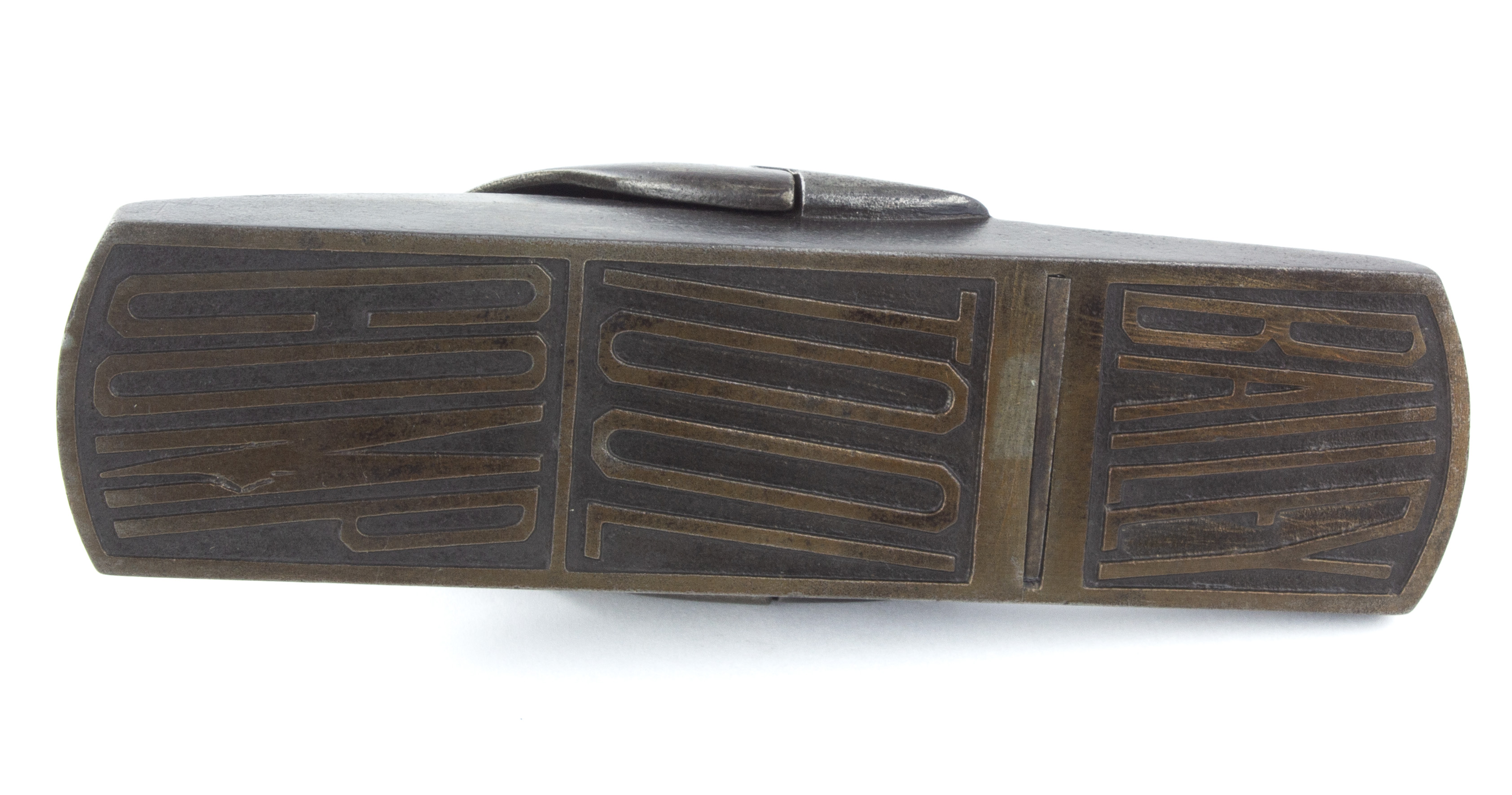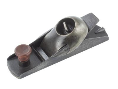 B67-197 BLOCK PLANE. Bailey Tool Co. Type "B." One of the most sought after block planes with Bailey Tool Comp. cast into sole, original marked cutter with light pitting, japanning 50%. Good original knob. From the collection of David Jeffers. Good+ 1000-2000