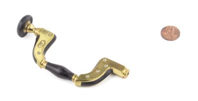 B67-216 MINIATURE FRAMED ULTIMATUM BRACE. Likely made by Paul Hamler but not marked. 5" long, ebony and brass body including complete ivory ring in ebony head. Very nicely made reproduction of a Marples Ultimatum. From the collection of David Jeffers. Fine 400-800