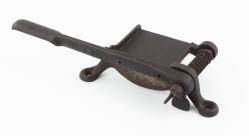 B67-309 INSTRUMENT MAKER'S PLANE. Unmarked, sheet metal construction with 2" compassed sole, wooden wedge, 5/8" cutter marked Made in Germany. Metal very clean. From the collection of David Jeffers. Good+ 75-150