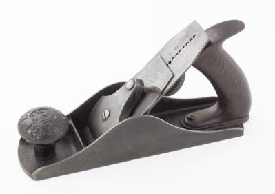 B67-318 SMOOTHING PLANE. Bailey Victor No. 4. Cast iron tote and loop style lever cap locking screw. Original marked chip breaker and cutter looks original as well. Japanning 90%, metal lightly oxidized but clean, good casting on knob. Good+ 150-300