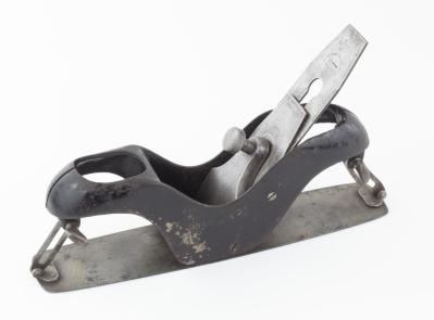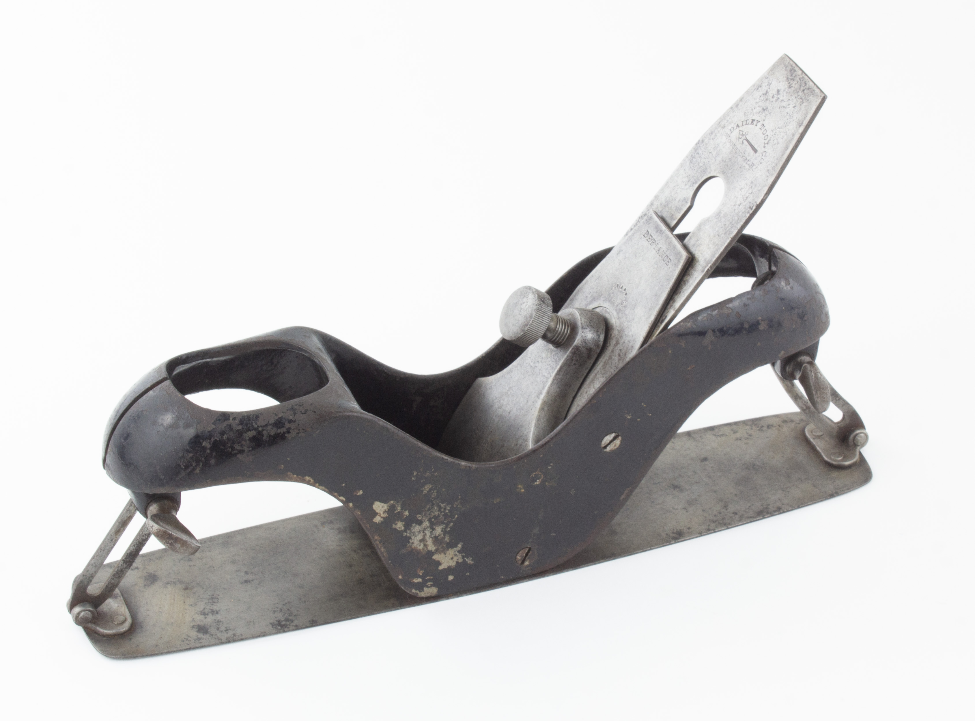 B67-328 FLEXIBLE SOLE PLANE. Bailey Tool Co. Defiance No. 9. Japanning 75%, original marked cutter, light oxidation on metal but no rust or pitting. A nice example. From the collection of Harold Unruh. Good 125-250