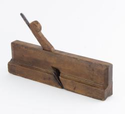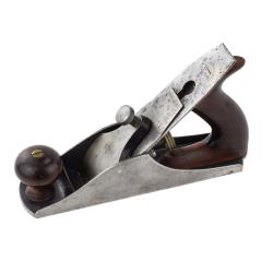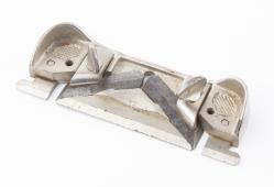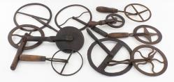 B67-372 BRASS FRAMED BREAST DRILL. 14-1/2" long with rectangular cast brass frame, bulbous wooden head. Cast iron handle, drive handle is adjustable. Chuck with locking screw. Very clean and works smoothly; a well made example from the days when craftsmen made their own drills. From the collection of David Jeffers. Fine 100-200