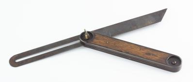 B67-459 T- BEVEL. Traut Patent. Stanley's first bevel, based on Traut's 1871 patent, offered only in 1871-72 and never assigned a model number. 10" unmarked blade with a few spots of light corrosion, 7-1/4" cast iron handle with walnut fill. First version without the small metal tab. From the collection of Steve Dice. Good+ 300-600