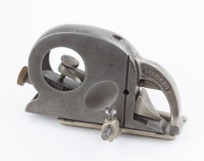 B67-501 BULLNOSE RABBET PLANE. Sargent Ladybug No. 1506-1/2. The shortest version of the Bug, 5" sole, has its fence and depth stop. Nickel is dulled but 80% present, overall clean. Uncommon size. From the collection of Harold Unruh. Good+ 500-1000