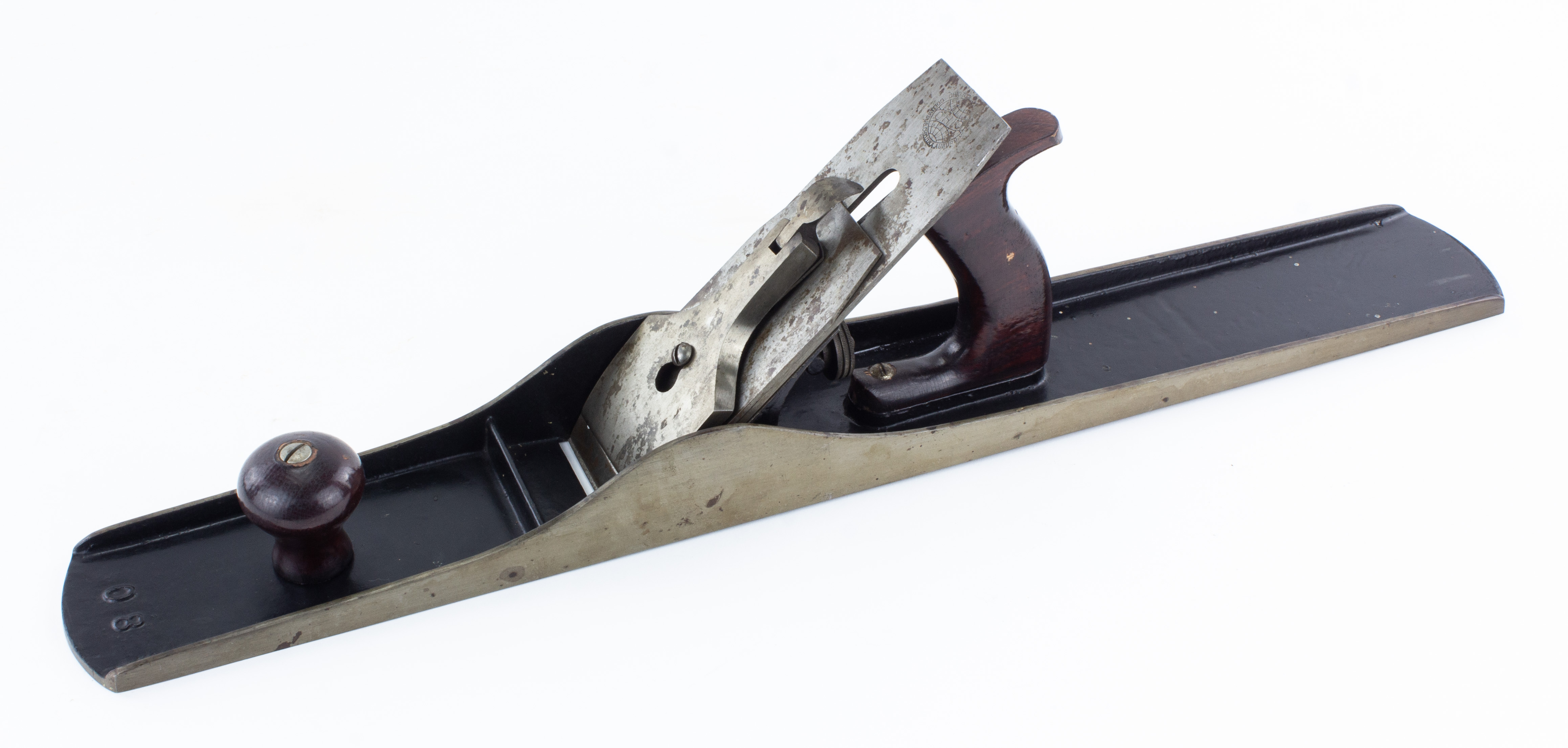 B67-505 JOINTER. Ohio Tool Co. No. 08C. Original OTC Globe cutter, japanning 99%, tote has a few scrapes but no serious damage, some surface rust spots on cheeks and sole as well as cutter and lever cap. Uncommon size. 150 300-600