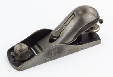 B67-518 BLOCK PLANE. Sargent No. 5306. Unmarked Type 1 with Page's patent cam-locking lever cap with patent date at base, Fulton cutter so could be a Fulton example made by Sargent or replacement cutter. Japanning 80%, overall clean. Good+ 100-200