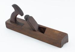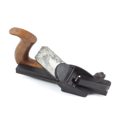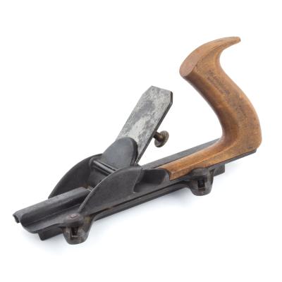 B67-536 TONGUE PLANE. Loughborough Patent. Rare even by the standards of Loughborough planes, this is based on his second patent, issued in 1859. The patent was for a filletster, with a cast iron fence with diagonal slot and U-shaped lever cap, but he also manufactured a tongue-cutting version. See PTAMPIA II, page 42. It has Loughborough's name and the patent date stamped clearly into the beech tote, which is in immaculate condition; japanning 70% and some light surface oxidation. From the collection of Harold Unruh. Good+ 4000-8000