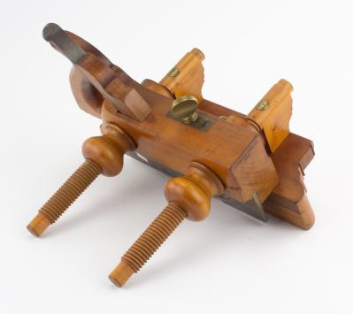 B67-610 SCREW ARM HANDLED PLOW PLANE. Sandusky Tool Co. No. 129. Solid boxwood throughout, original Sandusky cutter. A couple of microscopic chips and scratches but overall in immaculate condition. From the collection of David Jeffers. Fine 100-200