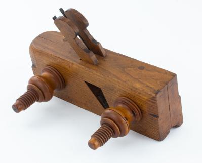 B67-613 ADJUSTABLE SASH PLANE. J.T. Brown. Screw arm type with boxwood arms and nuts and boxing strip nailed along the fence. One chip from the front of the boxing strip, otherwise looks like it was just made. Brown worked in Baltimore from 1824-43; this is his A script mark. Good+ 120-240