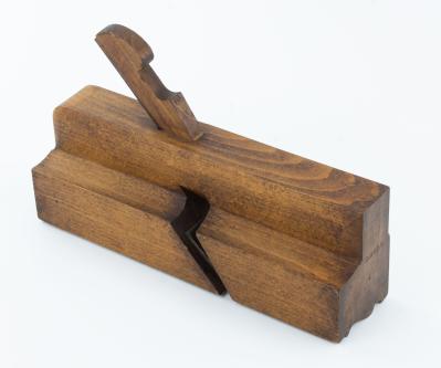 B67-614 WIDE MOLDING PLANE. E & J Evans. Quirk ogee and fillet, 1-3/4" wide, single boxed a quirk 9-1/2" long. B mark. Some wear from the front of the boxing strip; otherwise near fine. Good+ 60-120