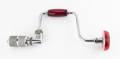 B67-635 BIT BRACE. Millers Falls "Parsons" No. 5010. First version with Leland's universal jaws chuck, 10" sweep, red permaloid head with the MF logo imbedded. Fully boxed ratchet with ball bearing head and oilite bearings. One of the Cadillacs of the MF line, and looks like it was made yesterday. From the collection of Jim and Christa Schoenky. Fine 100-200