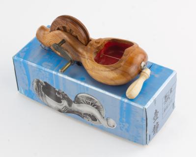 B67-665 MODERN MAKER. Japanese Ink Line IOB. Modern version of the traditional sumitsubo, or ink line, made by The Japanese Woodworker of California. 6" long, box includes packet of charcoal and silk filler, and instructions to fill the ink compartment. The instructions say the box also includes a vial of traditional black ink, but you'll have to get that at your local Sumitsubos-R-Us. Apart from that, it's like new, never used. Fine 80-160