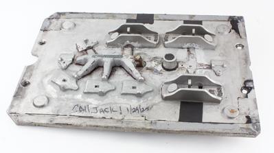B67-683 SAND CASTING PLATE. Union Manufacturing/Paul Hamler. 16" x 22" aluminum casting originally made under contract for Paul Hamler and is the basis of his reproduction Stanley No. 212 planes, of which he made around 250 according to Paul. Union Manufacturing Co. acquired the casting from Hamler Tools in 2020, and was modified to create their No. 67 scraper plane, including the No. 67 SP, a special production scraper released recently. Union produced around 600 castings from this pattern before retiring it due to a design change. A unique piece of modern toolmaking history. Good+ 200-400
