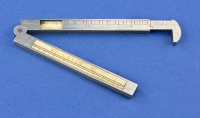 B67-714 IVORY CALIPER RULE. Stanley No. 40-1/2. Twofold, six inch, German silver binding and caliper. Type 2, not marked by Stanley. Lightly yellowed and markings a little faint but legible. Good+ 100-200
