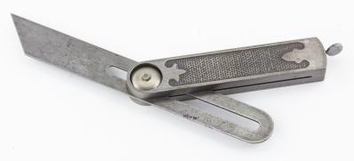 B67-724 LOCKING T- BEVEL. Bailey Patent. Type 2 of Bailey's and Sargent's 1872 patent, 8" blade with clear patent mark and user mark, 5-1/2" handle, super clean, locking mechanism works smoothly. From the collection of Steve Dice. Fine 200-400