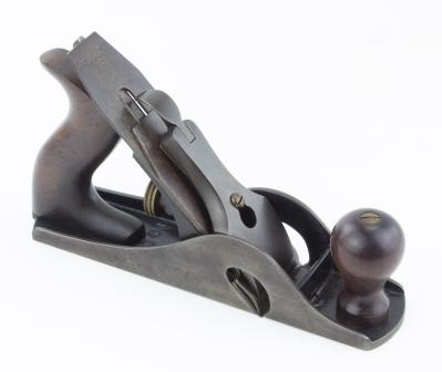 B67-755 CARRIAGEMAKER'S RABBET PLANE. Stanley No. 10-1/2. Vee mark on cutter, plain lever cap. Japanning 90%, nickel plating worn off lever cap, wood fine, metal has light oxidation but no damage. From the collection of David Jeffers. Good+ 125-250