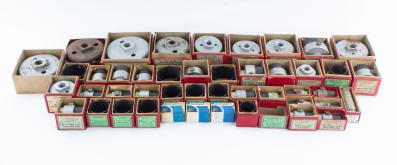 B67-779 DEALER LOT OF HOLE SAWS IN ORIGINAL BOXES. Millers Falls. Over 40 different types and sizes of hole saws in original boxes, one hole saw and cup is missing lid but rest are good. Most are clean, a few have surface rust. Boxes have mild wear. As is, no returns. Good & better 100-200
