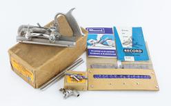 B68-54 CERAMIC OCCUPATIONAL FIGURINES. Possibly bookends, matching set, each is 9-1/2" tall and depicts carpenter leaning against workbench wearing a blue apron and holding a horned plane, horn broken off one but other is intact. One has blue GDR 1877 Crown mark on base, other has partial black mark that looks like an eagle, both likely German. Nicely made. Good+ 75-150