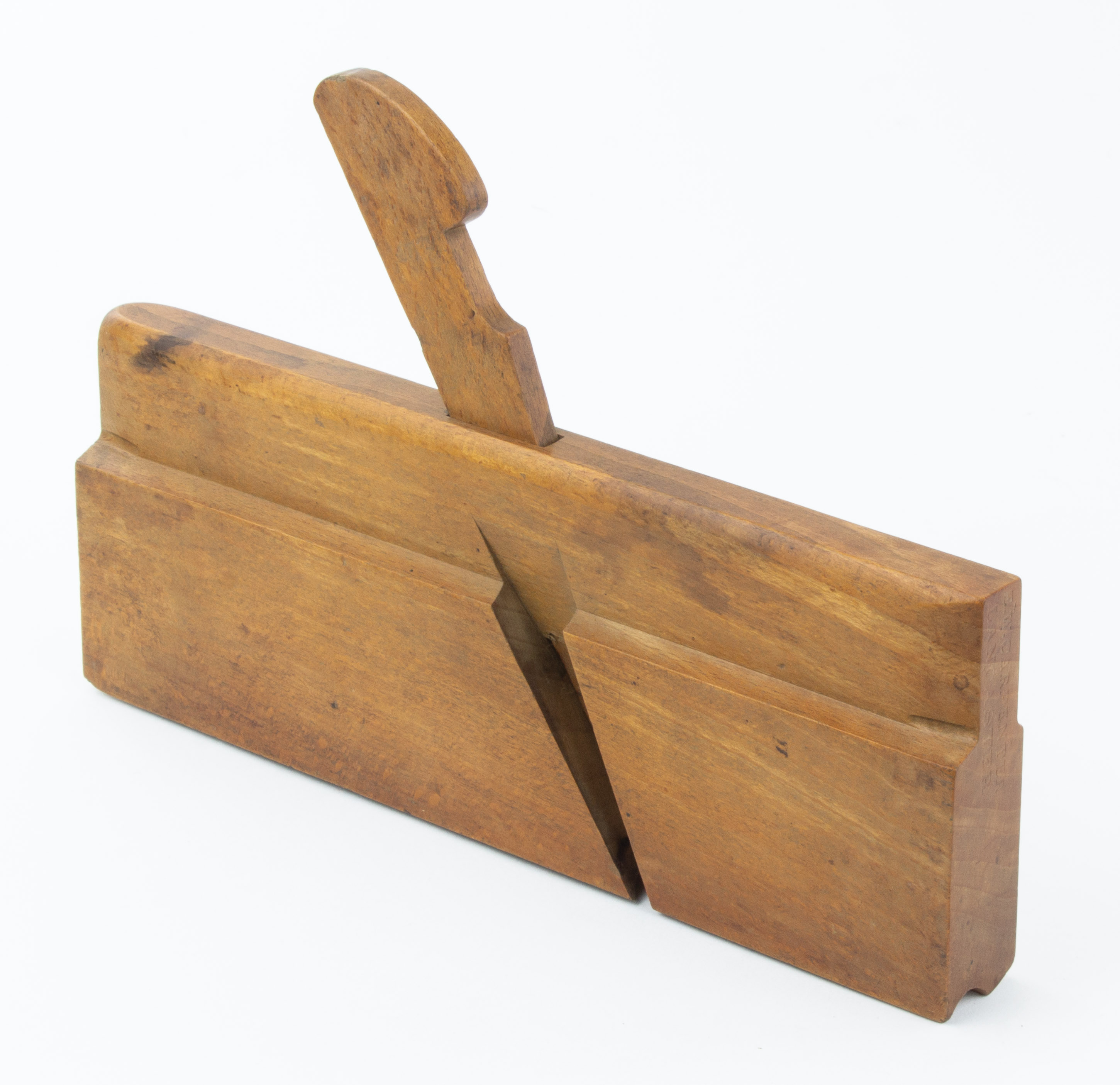 B68-121 ROUND PLANE. E.W. Carpenter. Cuts 1/2" round, applewood body with 9-3/4" sole. Wood has only light wear and light water stain at toe, missing its cutter. Carpenter planes made of applewood are uncommon. From the collection of Jim and Becky Leamy. Good- 50-100