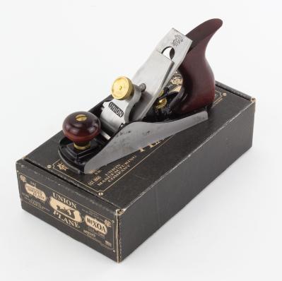 B68-123 MODERN MAKER. Union Manufacturing No. XOA Smoothing Plane IOB. 6" sole with 1-1/4" original marked cutter. Marked X-2nd on box, mint condition in original packaging. From the collection of Jim and Becky Leamy. Fine 400-800