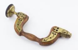 B68-143 INFILL MITRE PLANE. Unmarked and craftsman made. 10-1/4" cast steel body, fill looks like mahogany, 2-1/4" William Ash iron. Has a cammed lever cap marked with Leonard Bailey's 1858 patent. Metal oxidized with moderate rust and pitting on sole, lever cap has 50% japanning, wood clean. From the collection of Harold Unruh. Good 100-200