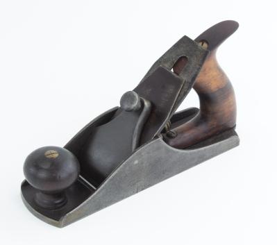 B68-168 SMOOTHING PLANE. Bailey Tool Co. No. 4. Japanning 95%, well-reglued crack in tote, otherwise wood is very clean. Stanley replacement cutter. A few dings to metal, otherwise clean. From the collection of Harold Unruh. Good 100-200