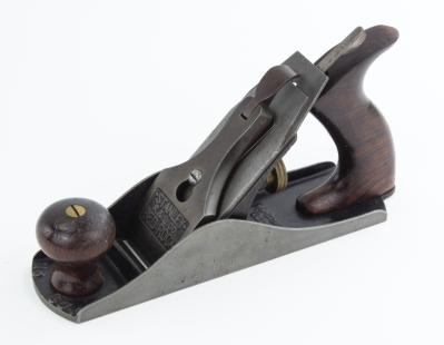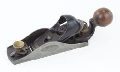 B68-177 BEDROCK SMOOTHING PLANE. Stanley No. 604. Type 3 with 1892 patent date cutter, japanning 95%, wood has mild wear but overall good, metal clean. From the collection of Ray Schmidt. Good+ 100-200