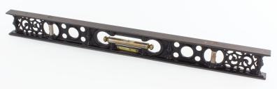 B68-264 CAST IRON CARPENTER'S LEVEL. Davis Level & Tool. 24" version with brass name plate under level vial. Japanning fully intact, and all vials original. From the collection of David Jeffers. Good+ 120-240