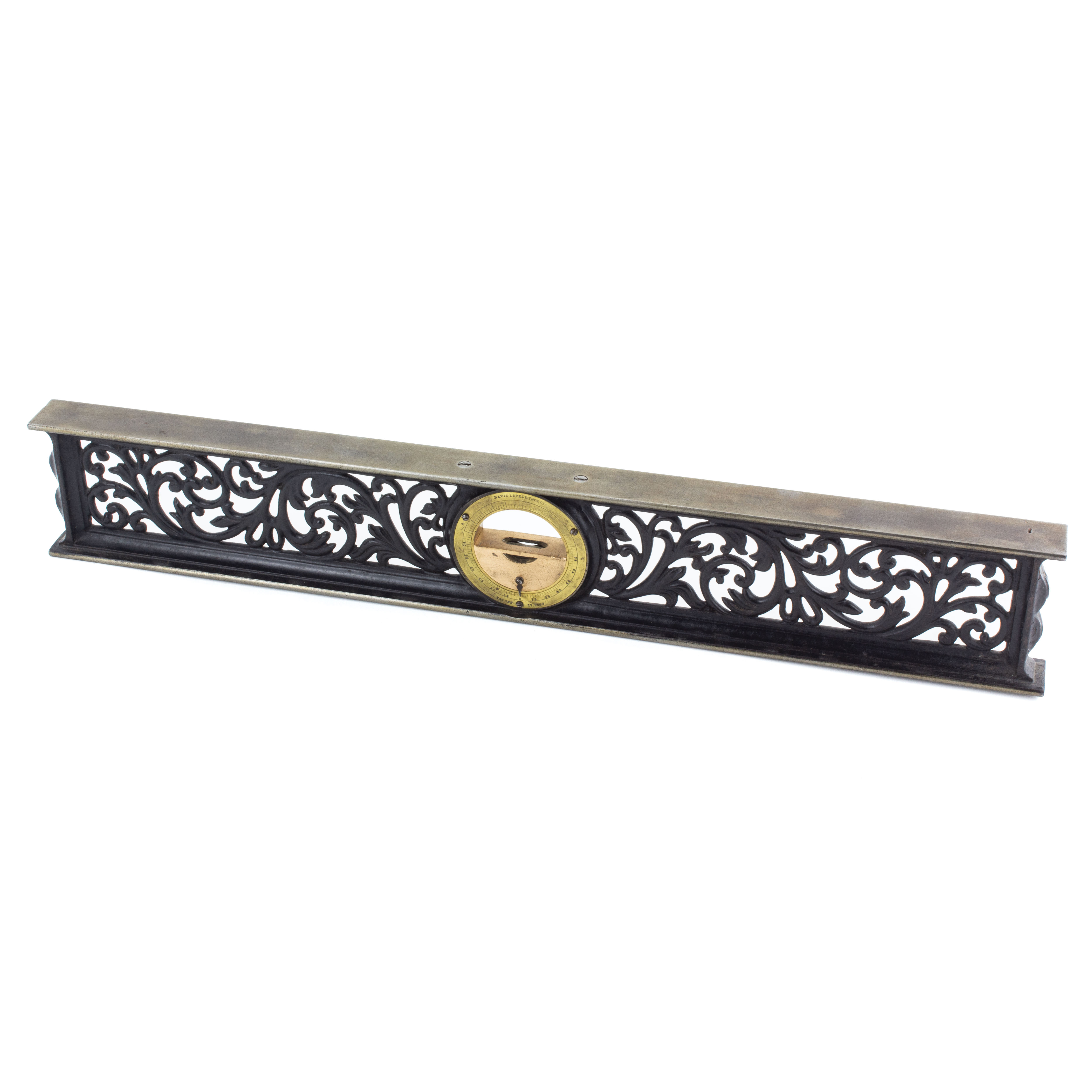 B68-266 CAST IRON INCLINOMETER. Davis Level & Tool No. 3. 18" version without gold highlighting, japanning 90%. Dial and vial both intact, some tarnish to brass on backside of dial. From the collection of Harold Unruh. Good + 200-400