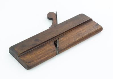 B68-394 EIGHTEENTH CENTURY MOLDING PLANE. E. Newell. 5/8" round, 10" long with rabbet type escapement, narrow flat chamfers and fluting. A mark, four stars. Wood oxidized with light wear. Good+ 200-400