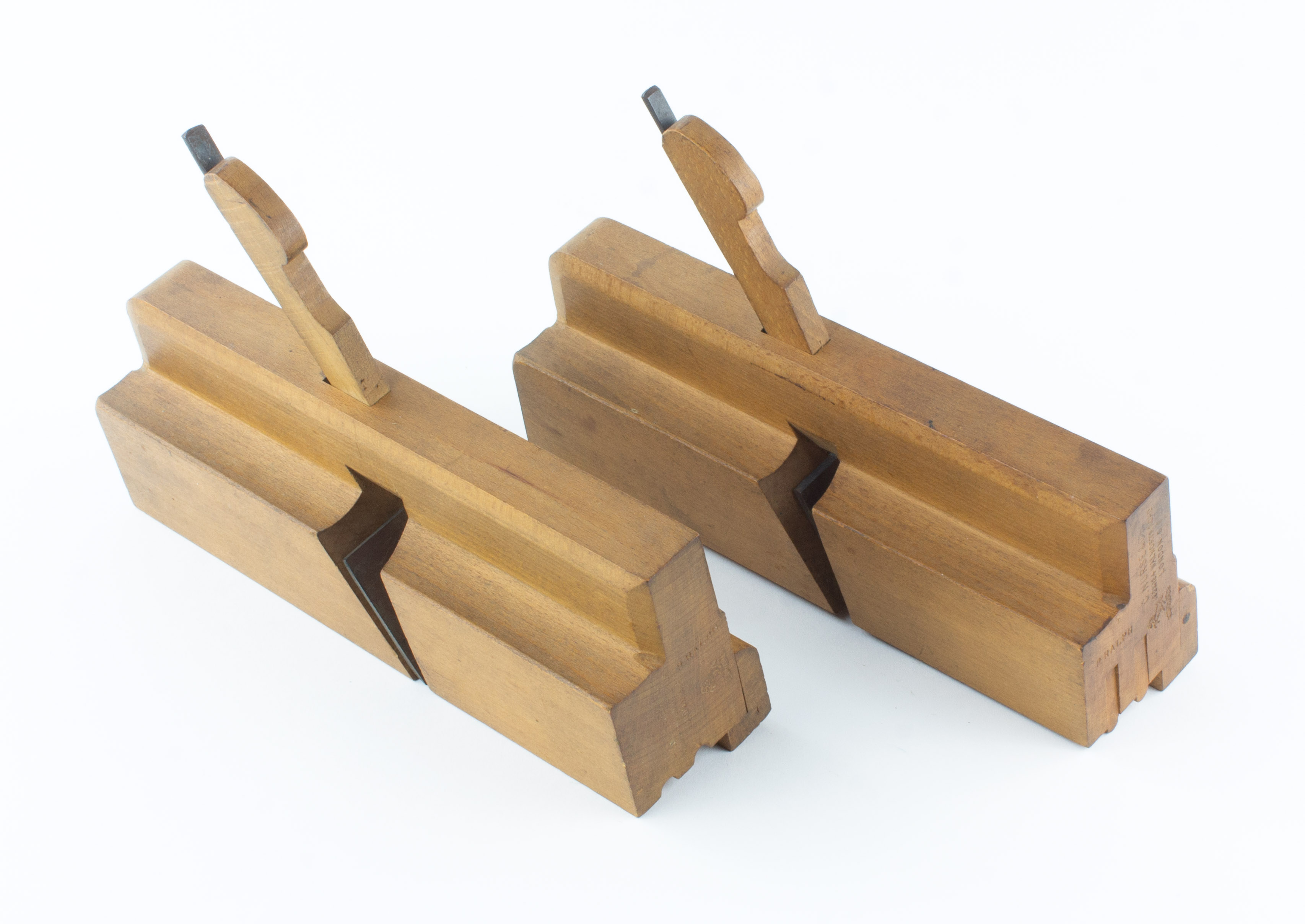 B68-437 SET OF CASEMAKER'S PLANES. Charles Nurse & Co. Also called "air tight planes", designed to make a double seal in the door of sealed cases. Whelan, Figure 13.94F and G. These are 9-3/4" long, with applied fences, the one that cuts the grooves is double boxed, both are marked on the toe with Nurse's Walworth Road address and the "Invictus" mark. Like new; if they weren't also marked with matching user names, you'd think they were still on the shelf. From the collection of Jim and Becky Leamy. Fine 100-200