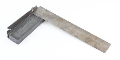 B68-450 PATENTED COMBINATION TRY SQUARE AND BEVEL. Nichols Mfg. Co. Patented by Alfred W. Benskin and manufactured by Nichols Mfg. Co. 5" bevel blade stored inside handle and pivots out with a locking thumbscrew. Handle cast with "Nichols Mfg. Co." and "Pat Oct. 18, 1904" on either side. 8" ruled try square blade has some very light pitting but metal otherwise very clean. Uncommon. From the collection of Steve Dice.