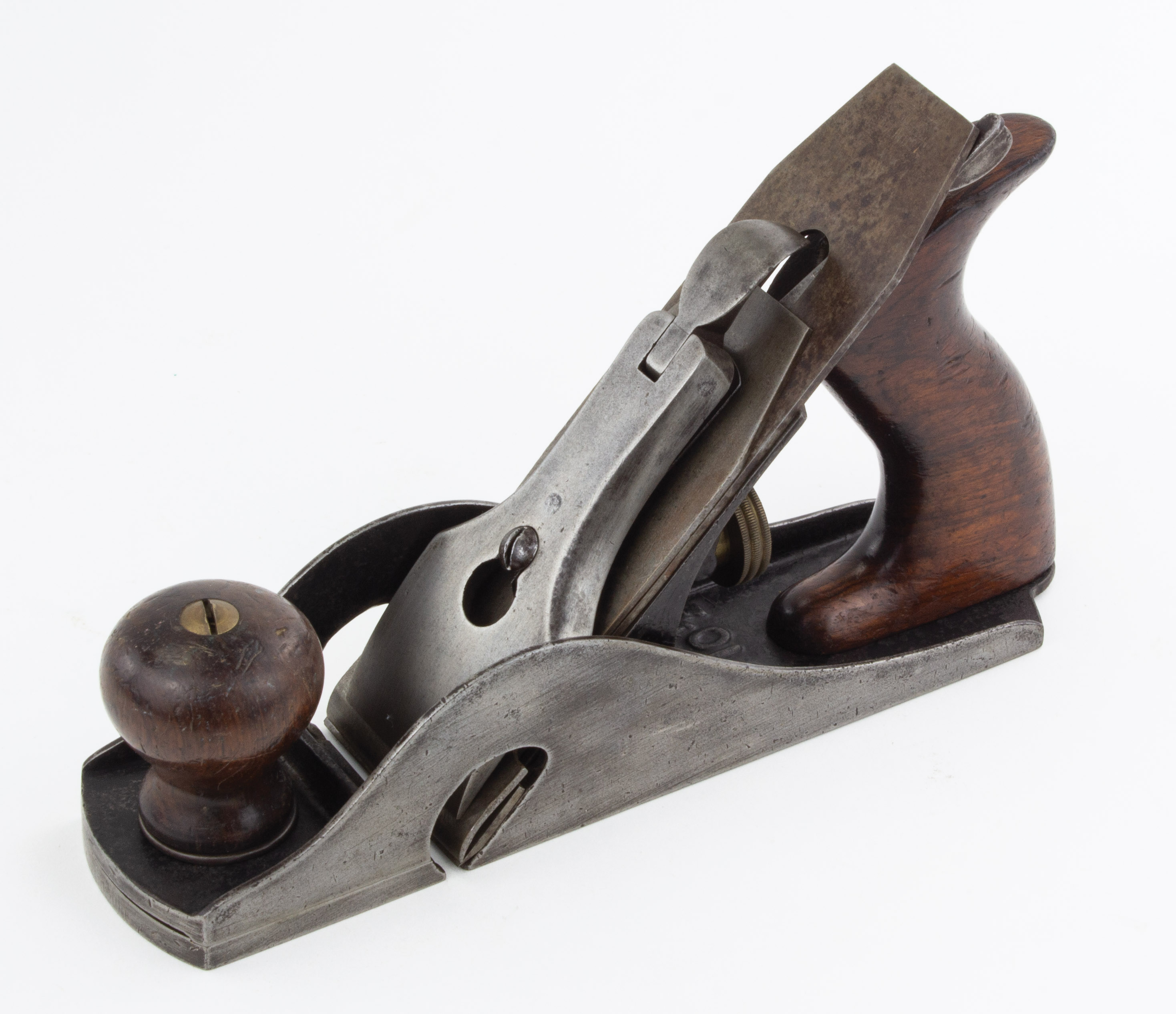 B68-491 CARRIAGEMAKER'S RABBET PLANE. Stanley No. 10-1/2. Type 1 with notched rectangle cutter, S casting mark. Wood and metal both have light scratches but no damage. From the collection of Harold Unruh. Good 200-400